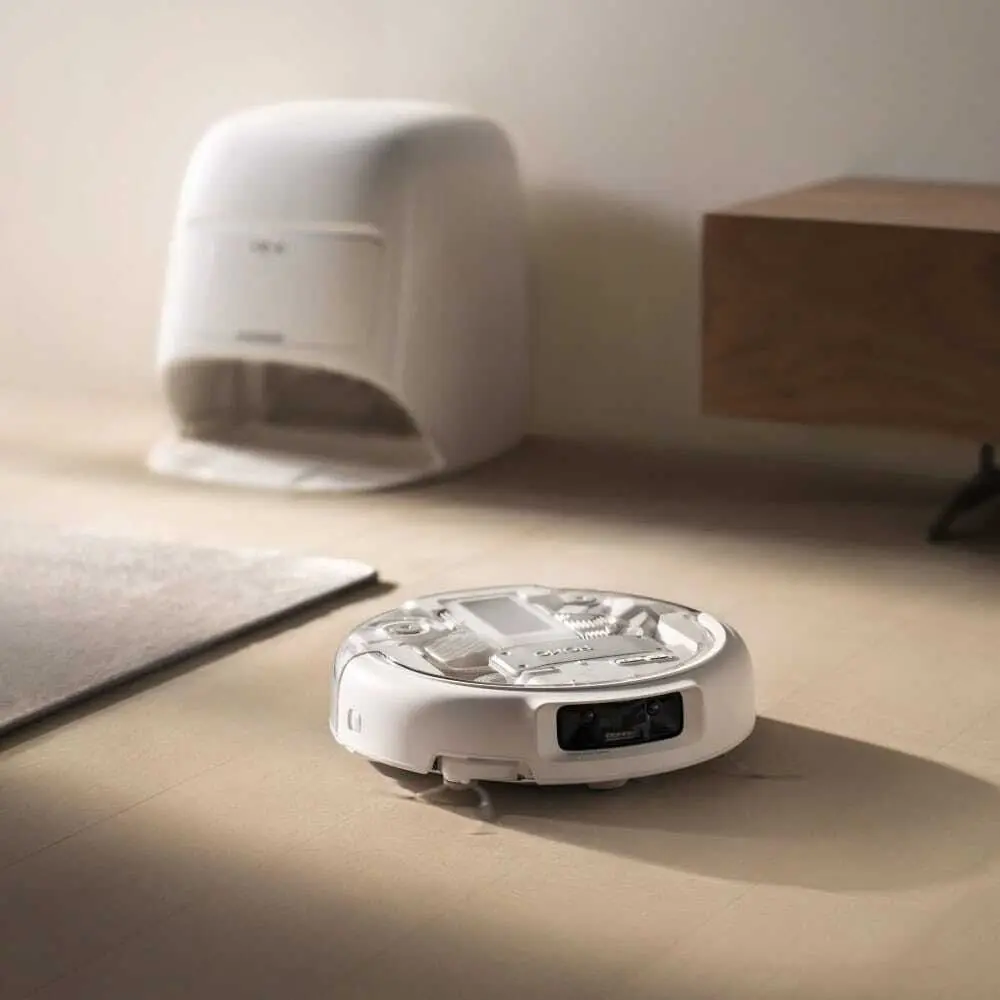4. «DJI First» относится к серии ROMO, выпущенной в августе 2025 года. Это первый продукт DJI, использующий струи воды высокого давления для очистки основания базовой станции и оснащенный большим всасывающим отверстием. Под «не требующим обслуживания» понимается только поддон для очистки базовой станции и не подразумевается замена резервуара для воды или других расходных материалов.