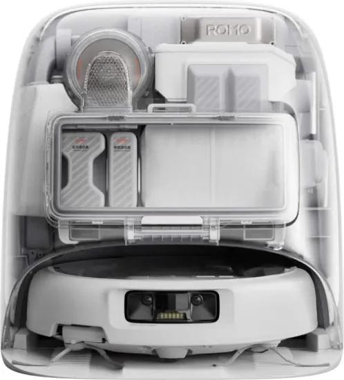 4. «DJI First» относится к серии ROMO, выпущенной в августе 2025 года. Это первый продукт DJI, использующий струи воды высокого давления для очистки основания базовой станции и оснащенный большим всасывающим отверстием. Под «не требующим обслуживания» понимается только поддон для очистки базовой станции и не подразумевается замена резервуара для воды или других расходных материалов.